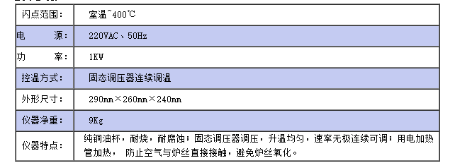 儀器符合GB/T3536;GB/T267;ASTMD92標準,適用于測定石油產品的閃點和燃點,但不適用于測定燃料油的開口閃點低于79℃石油產品。儀器采用固態(tài)調壓器,用調節(jié)旋鈕調節(jié)電爐電壓從而實現(xiàn)按標準要求的升溫速度。