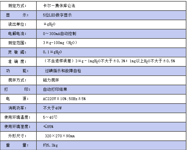 儀器符合GB/T7600;SH/T0246;GB/T606及采用卡爾—費休法測定樣品中水分的有關標準,儀器采用了先進的自動控制電路,電解電流自動跟蹤控制,外型結構新穎,從而使該儀器工作更可靠,使用更方便,具有分析速度快(一分鐘出結果)、操作簡便、精度高、自動性強等特點,同時具有自動打印功能,可將實驗結果、做樣時間、樣品編號自動打印出來,廣泛應用于石油、化工、電力、鐵路、環(huán)保等部門。